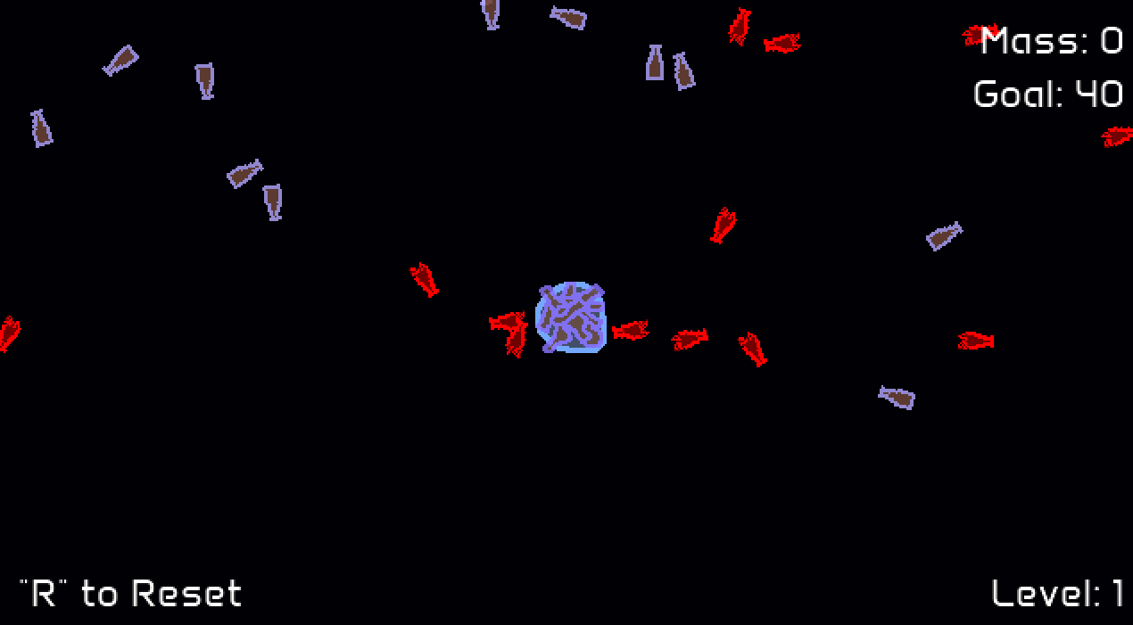 Reach the mass goal to progress to the next level, if you get stuck, restart.